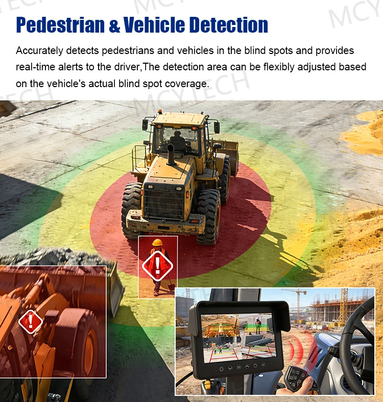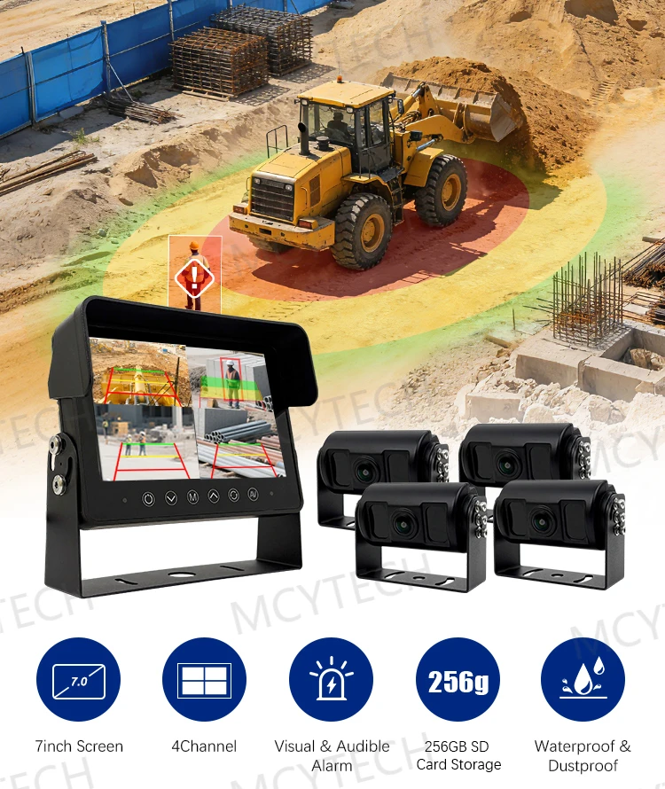 Sistema di Telecamere di Backup AI Macchine Edilizia P69K Impermeabile e Resistente con Rilevamento Pedoni per Escavatori