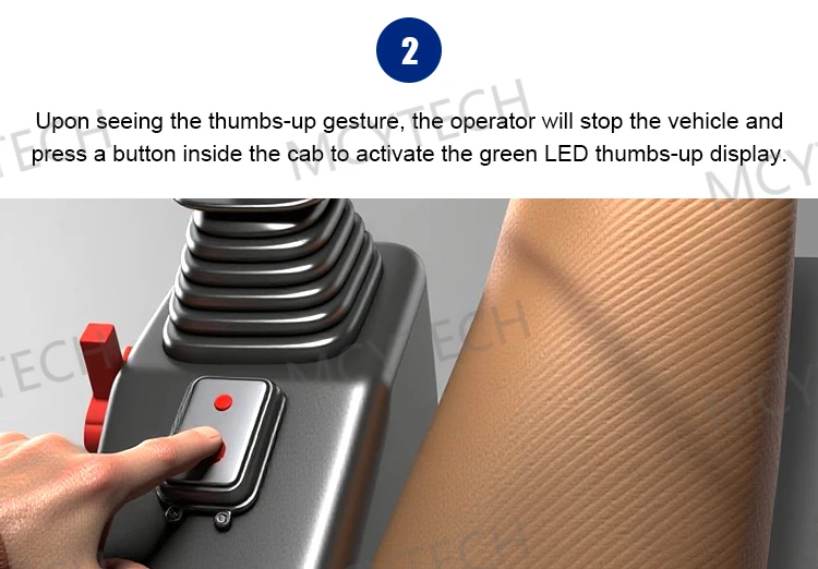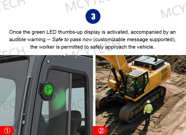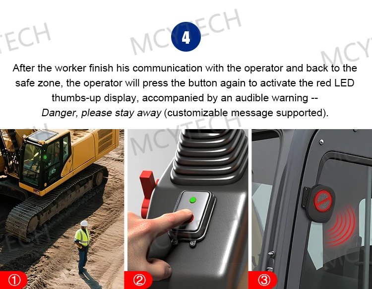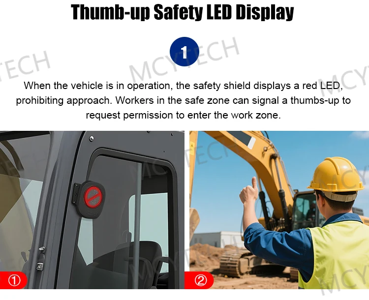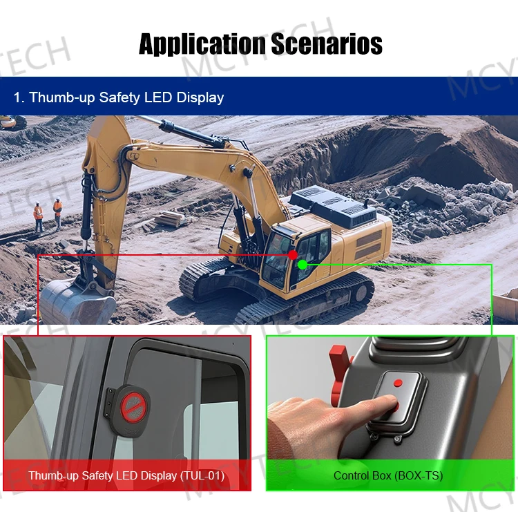 - Display LED ad Alta Visibilità con Pollice in Su: Segnala chiaramente lo stato sicuro/non sicuro ai lavoratori anche in condizioni meteorologiche avverse e polverose.